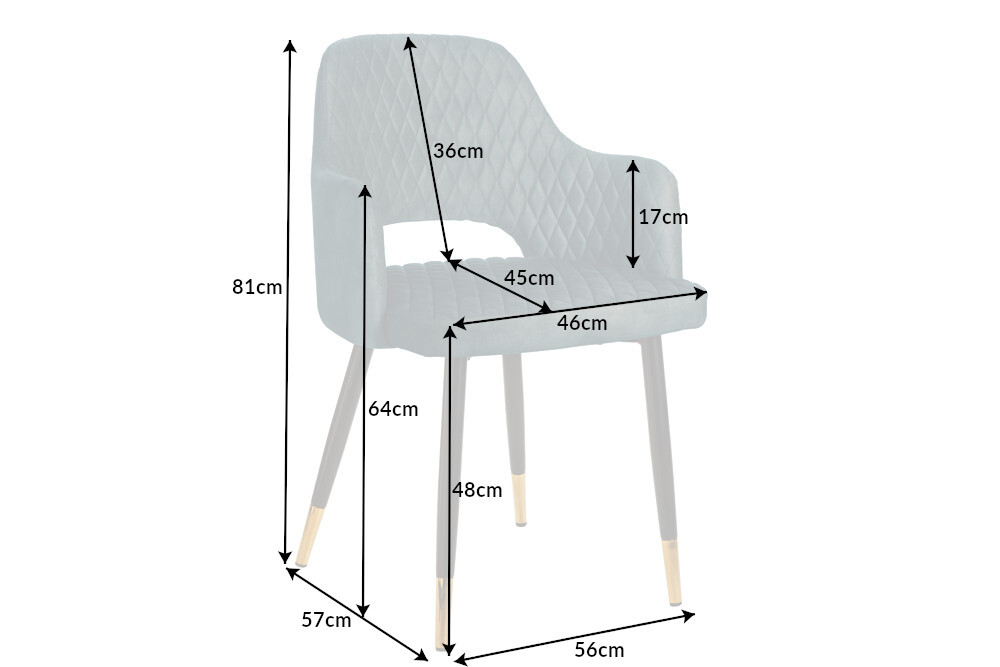 Elegante stoel PARIS petrol fluweel decoratief gewatteerd voetdoppen goud retro design met armleuningen – 42292