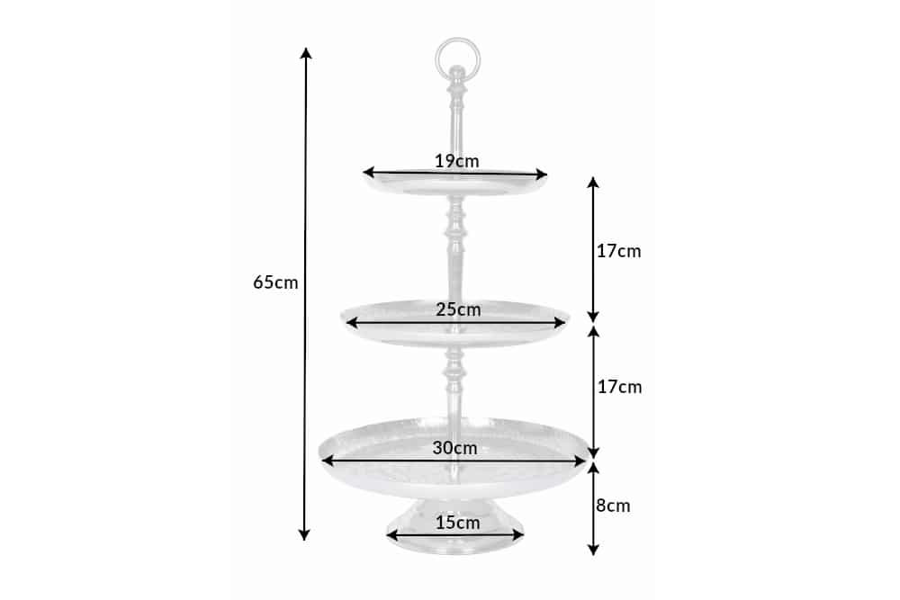 Elegante taartschaal ORIENT 65cm zilver in wild hamerdesign met drie niveaus – 41536