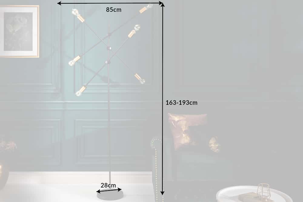 Elegante vloerlamp VARIATION 193cm zwart goud met zes draaibare lampen – 40776