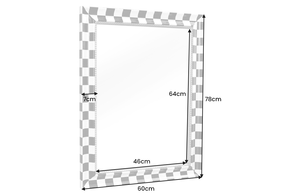 Welkom in het rijk van stijl! De CHESS wandspiegel is meer dan alleen een simpele spiegel: het is een lust voor het oog voor in huis. Het klassieke schaakbordpatroon in zwart en wit geeft deze rechthoekige spiegel met lijst niet alleen een vleugje elegantie, maar maakt hem ook de perfecte metgezel voor uw extravagante interieurstijl. De gouden versieringen langs de randen zorgen niet alleen voor accenten, maar benadrukken ook het glamoureuze karakter van dit unieke woonaccessoire.