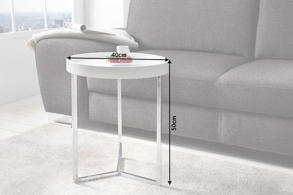 Extravagante bijzettafel MODULAR 40cm wit chroom rond incl. dienblad – 36715