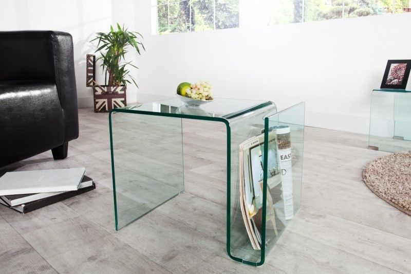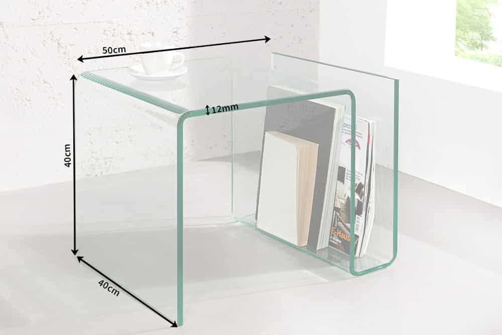 Extravagante glazen salontafel FANTOME 50cm bijzettafel met opbergvak voor tijdschriften transparant – 22860