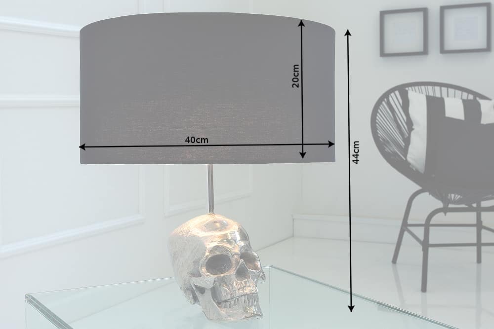 De donkere tint laat het licht van de lamp enigszins gedempt doorschijnen en creëert zo een bijzonder huiselijke sfeer in elke woonruimte. De elegante combinatie van zwart en zilver is gemakkelijk te combineren met veel verschillende stijlen en kleuren. De glanzende schedel vormt de kroon op het lampontwerp en wordt een eyecatcher die elke woonruimte net dat beetje extra geeft.