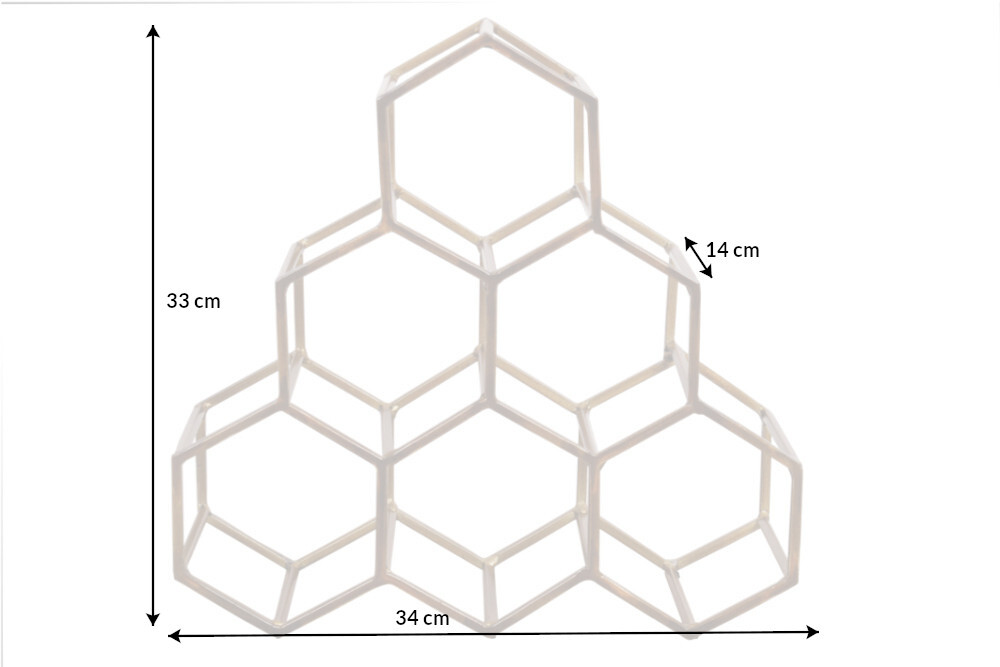 Dit wijnrek, gemaakt uit een hoogwaardige metaal-aluminiumlegering, geeft uw keuken, wijnkelder of bar niet alleen een praktische opbergmogelijkheid, maar ook een luxe uitstraling. Het honingraatontwerp, geïnspireerd op honingraten, geeft de plank een moderne en fascinerende esthetiek. Het wijnrek is uiterst eenvoudig schoon te maken en biedt ruimte voor maximaal 6 flessen van uw favoriete wijnen. De handgemaakte precisie en kwaliteit zorgen voor stabiliteit en langdurig gebruik.