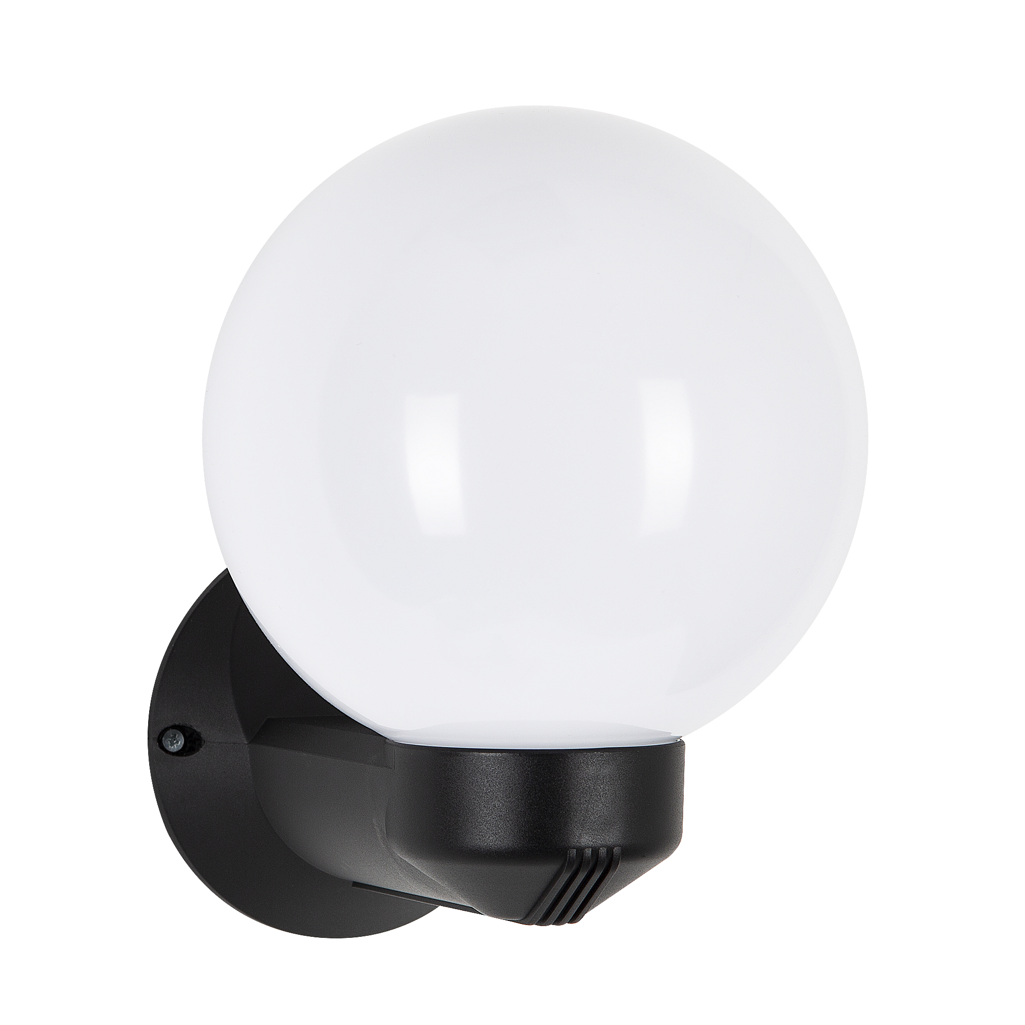 Deze Globe buitenlamp met strakke vormgeving bestaat uit een zwart armatuur vervaardigd van hoogwaardige kwaliteit kunststof. De ronde bol is uitgevoerd in een opaalkleur en heeft een doorsnede van 20cm. Deze bol is gemaakt van acrylaat, is weersbestendig en verkleurt niet. De wandlamp is voorzien van een E27 lamphouder en is dus ook LED geschikt.
