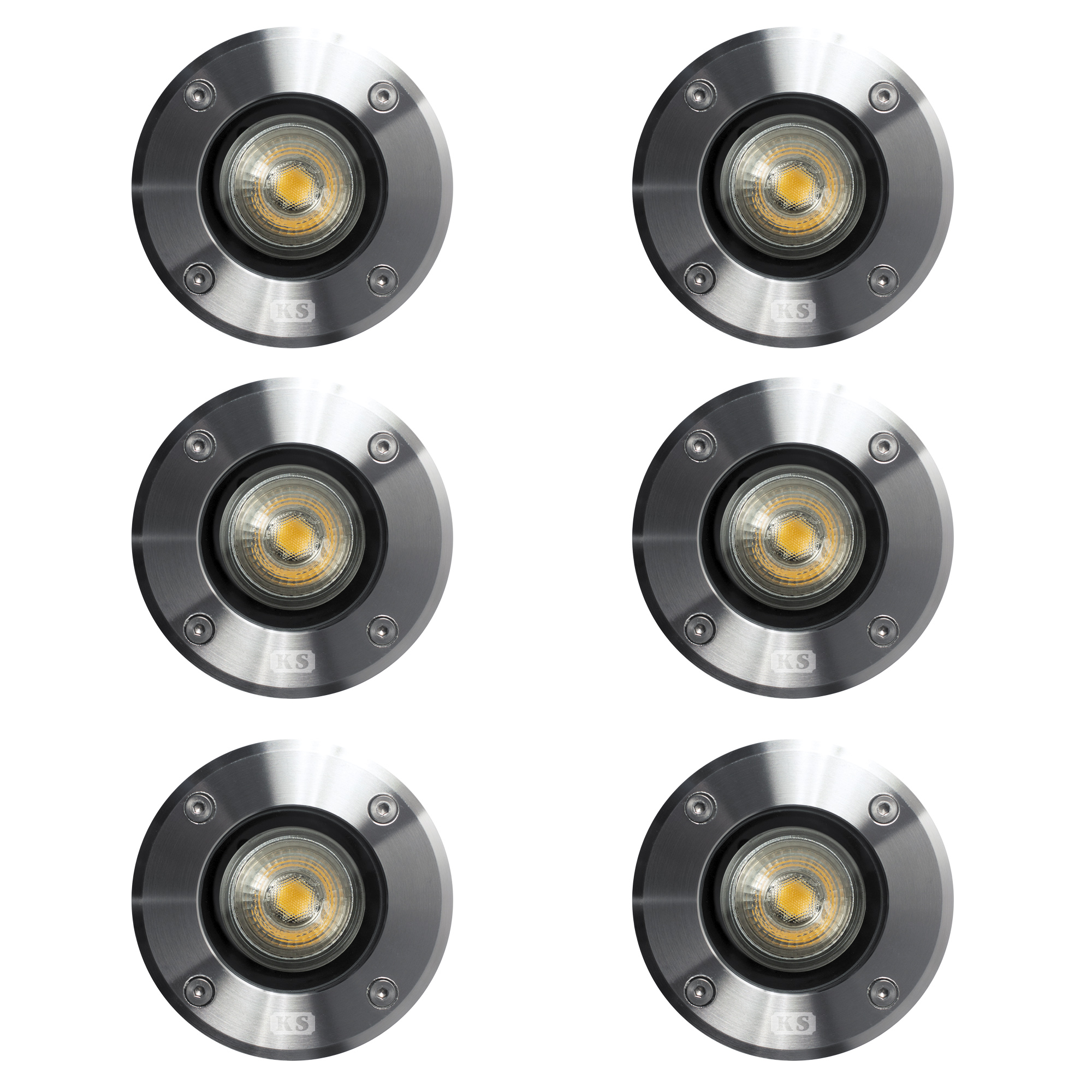 Dit artikel betreft een set van 6 stuks. Een grondspot van KS Verlichting voor een lage prijs. Deze inbouwgrondspot, met een diameter van 11 cm, bestaat uit een kunststof buitenbehuizing, robuuste aluminium behuizing en een RVS-afdekplaat met zeer sterk glas. De grondspot is voorzien van een GU10 fitting waarin zowel een LED- als een Halogeenlamp in kan tot maximaal 35 Watt.Bij deze grondspots worden geen lichtbronnen geleverd, de LED lamp of de foto is ter illustratie. In onderstaande keuzeproducten vind je de kwalitatief beste LED lichtbronnen welke Nostalux aanbiedt.