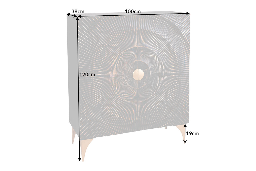 Als je nog op zoek bent naar een dressoir dat veel opbergruimte en een spannend design combineert, dan hebben wij misschien wel iets voor jou. Het GOLDEN SUNSET bord is ontworpen met een zwarte body van mangohout en de fronten zijn versierd met een enorm, gouden ornament. Passend hierbij zijn ook de pootjes en de knop voor het openen van de deuren uitgevoerd in elegant goud.