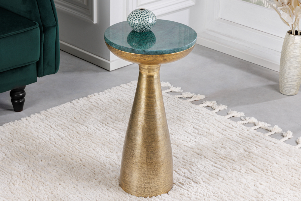Handgemaakte bijzettafel ELEMENTS 55cm goudgroen marmer rond – 42731