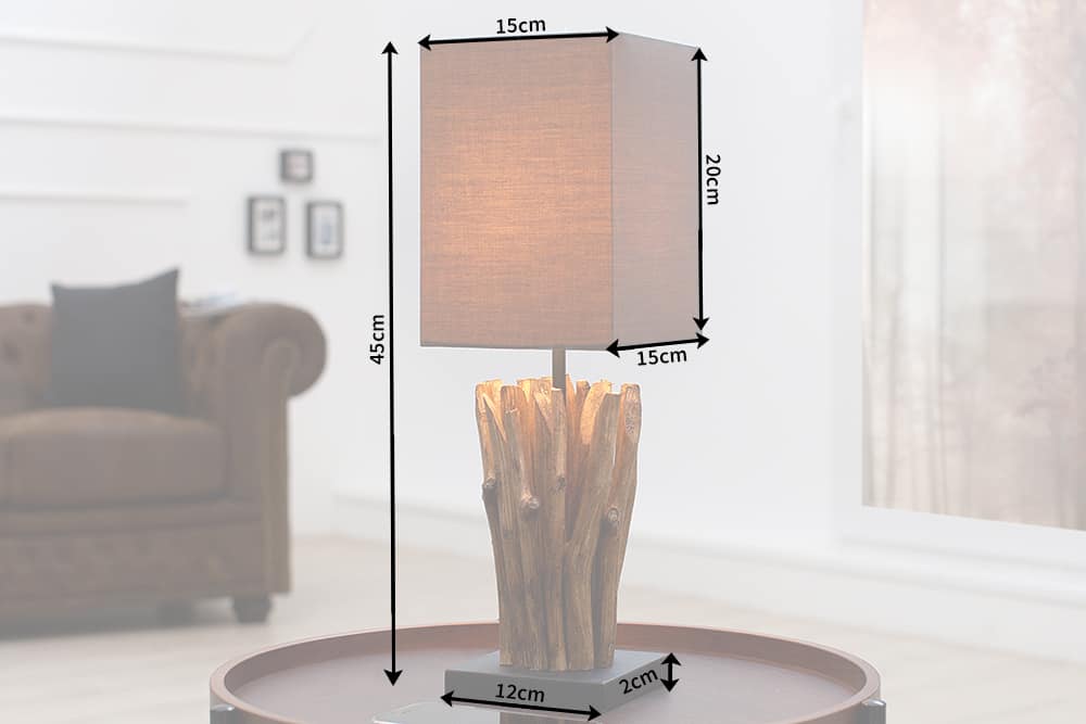 Handgemaakte drijfhout tafellamp EUPHORIA 45cm bruin met linnen kap – 36966