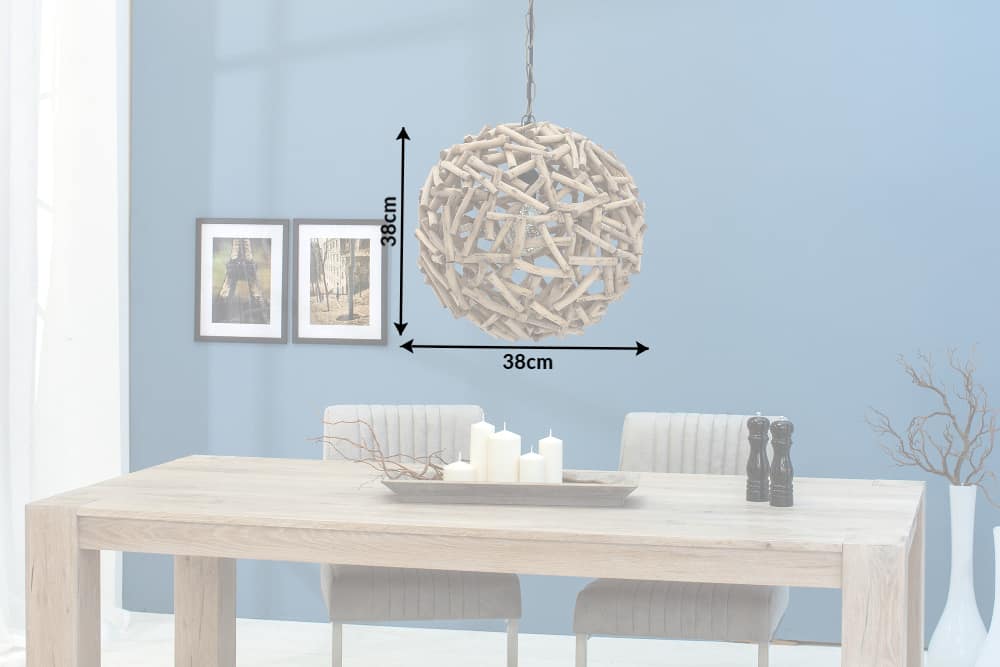 De gloeilamp glinstert effectief door de afzonderlijke drijfhouttakken en verlicht uw woonruimte. Met deze hanglamp ben je helemaal vrij als het gaat om combinaties. Je kunt ze combineren met alle kleuren en veel verschillende stijlen en een sfeer creëren die tegelijkertijd elegant, modern en natuurlijk is. De lamp staat bijzonder mooi boven een grote eettafel of in combinatie met andere drijfhouten meubelen.
