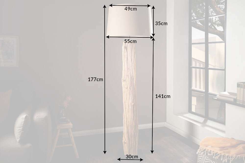 Handgemaakte vloerlamp ROUSILIQUE 180cm beige drijfhoutlamp linnen kap boomstam – 17320
