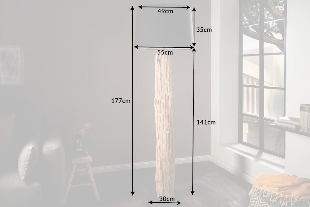 Handgemaakte vloerlamp ROUSILIQUE 180cm zwarte drijfhoutlamp linnen kap boomstam – 17321