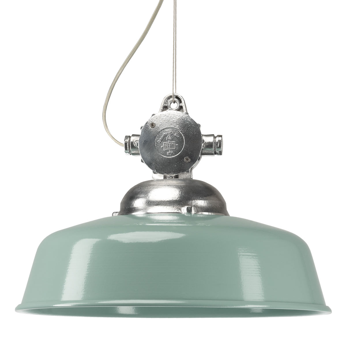 De Detroit hanglamp heeft een uniek stoer uiterlijk. De lamp is bevestigd aan een aluminium hand gegoten vintage stroom behuizing welke de lamp een bijzonder uiterlijk geeft. Met de bijgeleverde bijpassende aluminium afdekplaat hang je de lamp op met het dubbele ijzerdraad. De lamp is zo ook makkelijk in hoogte verstelbaar. Terug in de tijd met de unieke retro kleuren blauw, groen en bruin. Of gewoon een stoere variant in het antraciet of zwart.