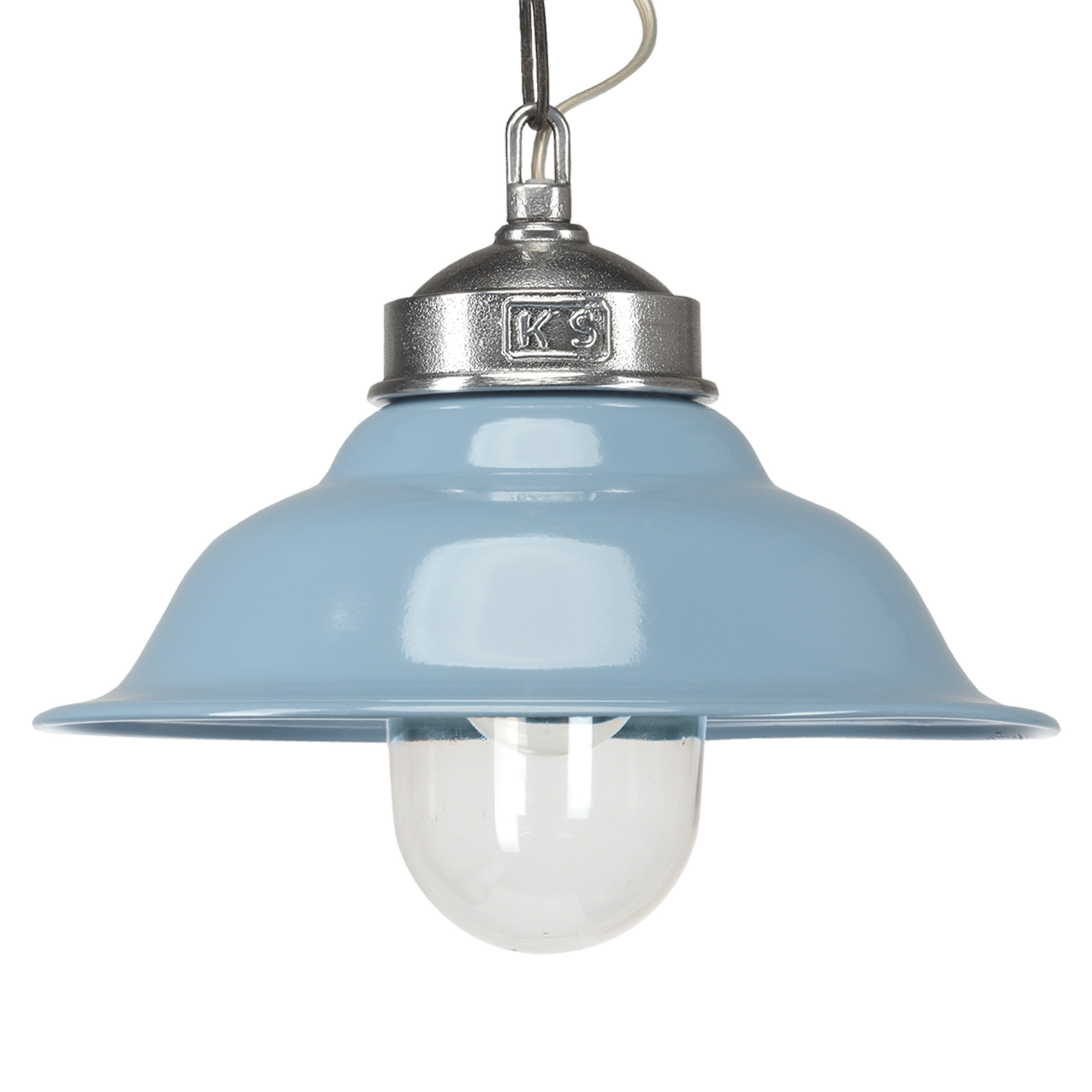 De Porto Fino is een stijlvolle vintage hanglamp in de unieke retro & vintage kleur Blauw. Deze hanglamp heeft een diameter van 30 cm is vervaardigd uit een aluminium kap en echt glazen stolp.