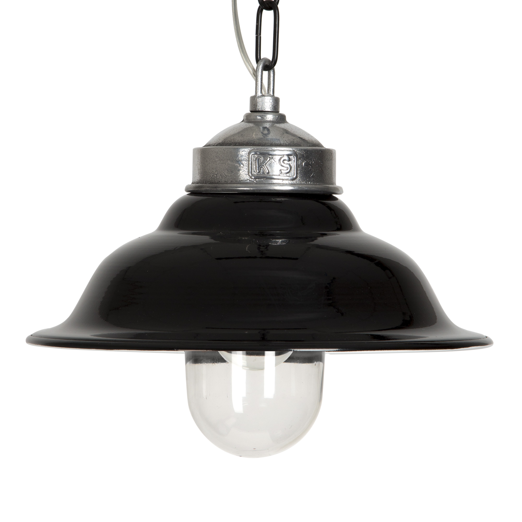 De Porto Fino is de perfecte lamp voor een plekje in de hal, boven de eettafel, in de woonkamer, serre of veranda. De kap is gemaakt van aluminium en voorzien van een gepantserde zwarte laklaag en heeft daardoor een stoere uitstraling. Een stijlvolle aanwinst dus en bovendien, niet onbelangrijk, geeft deze hanglamp vooral een zeer mooi lichtbeeld. Door het gebruik van een standaard E27 lampvoet kun je gebruik maken van diverse lichttechnieken waaronder LED, spaar of halogeen.De KS Porto Fino hanglamp wordt zonder lichtbron geleverd, deze kun je apart bijbestellen. Een hanglamp welk je door zijn unieke vormgeving en kleur mee terug in de tijd neemt. De lamp wordt geleverd met een bijpassende aluminium plafond haak.
