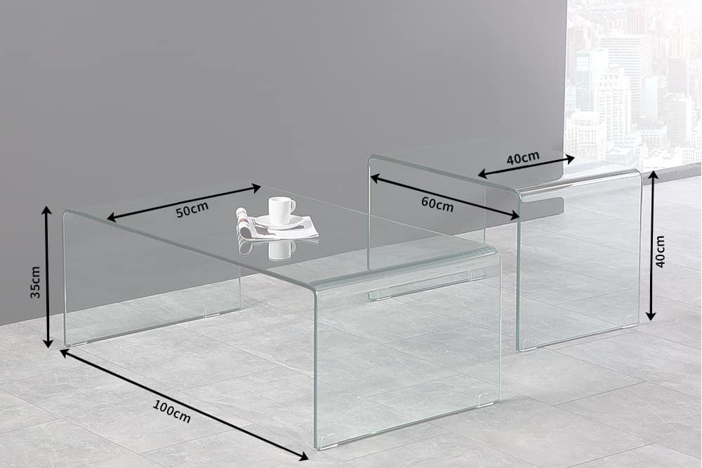 Hoogwaardige set van 2 glazen salontafels FANTOME 100cm transparant – 37255