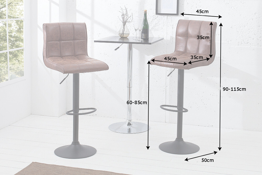 In hoogte verstelbare barkruk MODENA vintage bruine barstoel met voetsteun – 37937