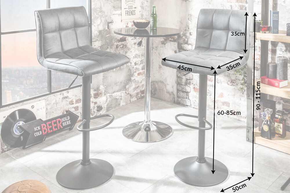 In hoogte verstelbare barkruk MODENA vintage grijze barstoel met voetsteun – 39001