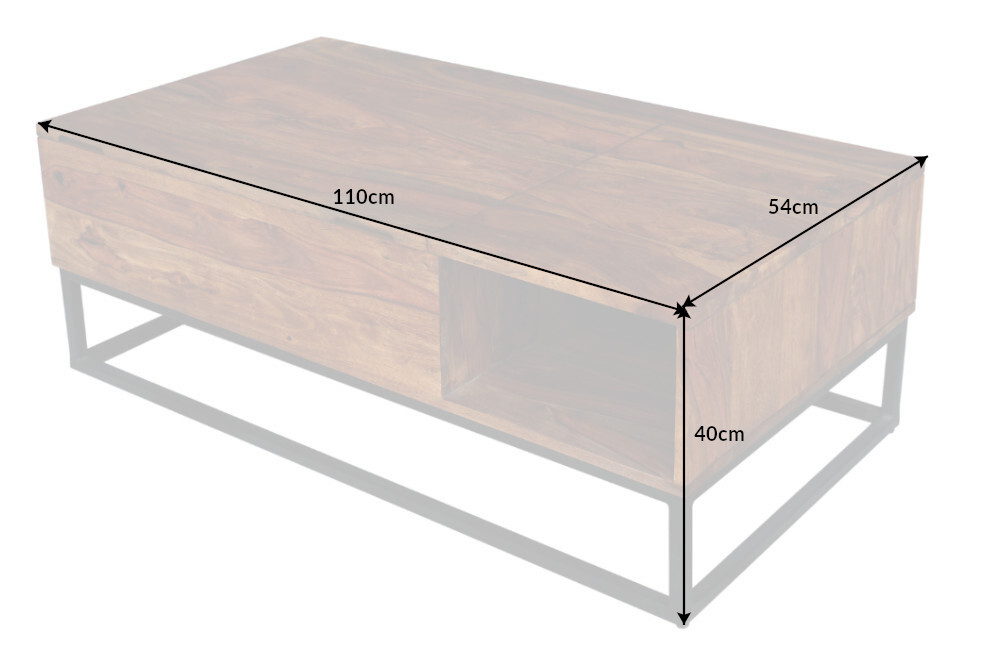 In hoogte verstelbare salontafel MAKASSAR FUNCTION 110cm massief sheeshamhout met opbergruimte metaal – 40299