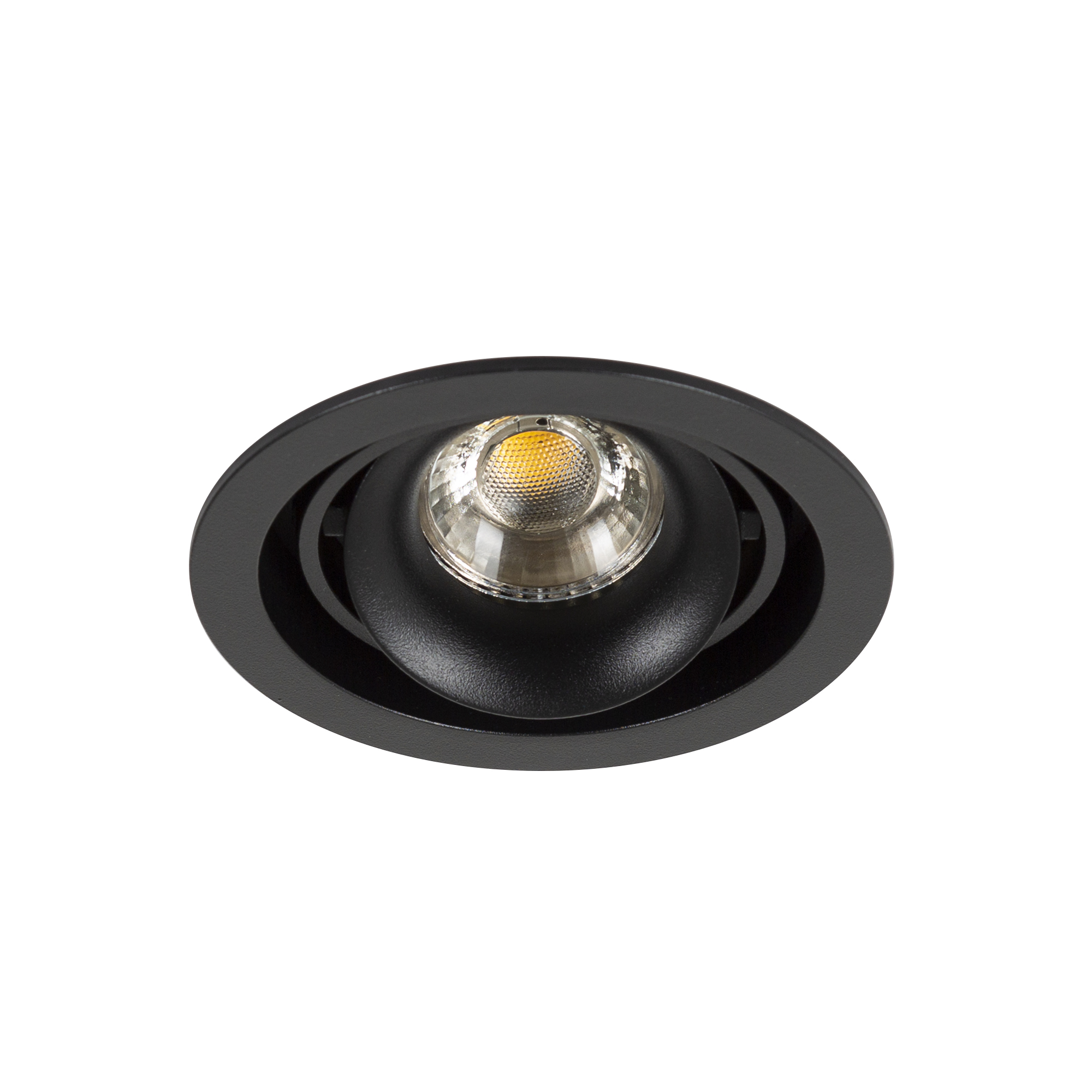 zwarte stalen ronde inbouwspot is draai- en kantelbaar, je kun dus