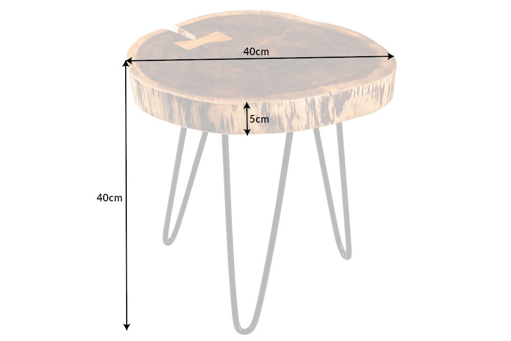 industrieele bijzettafel GOA 40cm natuurlijk acacia massief hout boomstam ronde haarspeldpoten – 42902