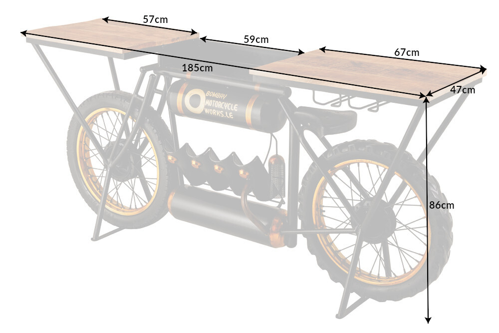 industrieele console MOTORCYCLE 185cm mangohout zwart motorfiets bar upcycling – 42108