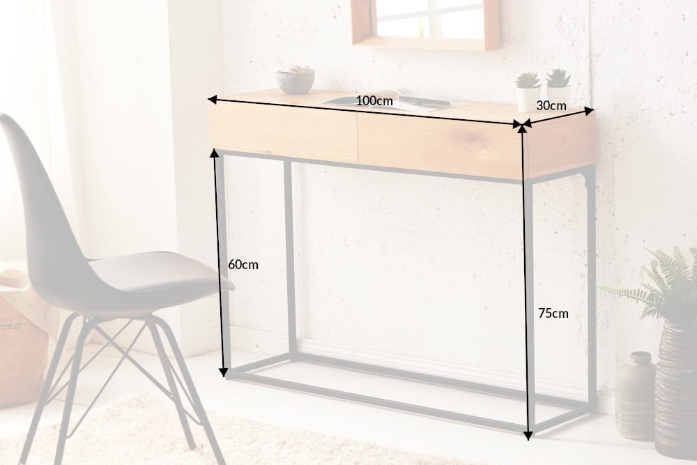 industrieele consoletafel ELEMENTS 100 cm laptoptafel in eikenlook met lades – 39706