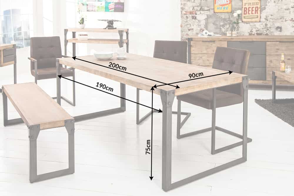 industrieele design eettafel FACTORY 200cm acacia teakgrijs wit gekalkte metalen poten loper – 36770