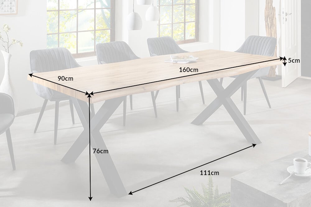 industrieele eettafel WILD 160cm naturel zwart wild eiken design boomrand hout metaal X-frame – 41331