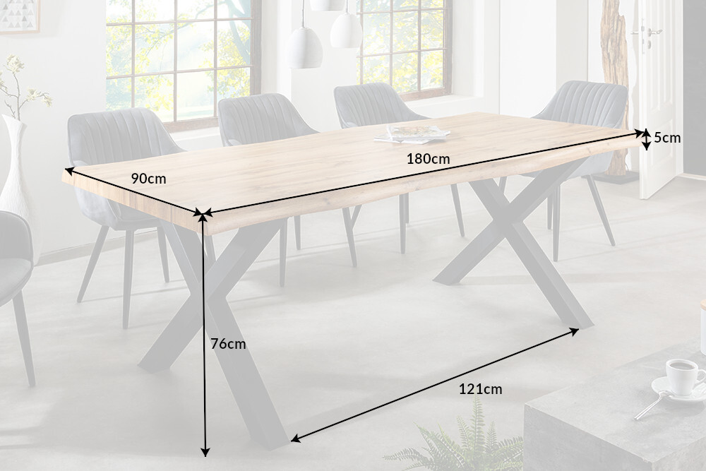 industrieele eettafel WILD 180cm naturel zwart wild eiken design boomrand hout metaal X-frame – 41332