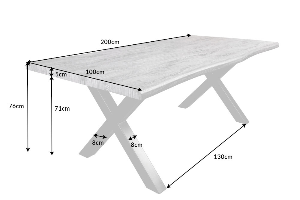 industrieele eettafel WILD 200cm grijs zwart wild eiken design boomrand X-frame metaal – 42279