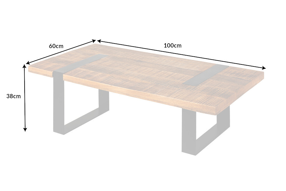 industrieele salontafel IRON CRAFT 100cm mangohout zwart metalen massief sledeframe – 43979
