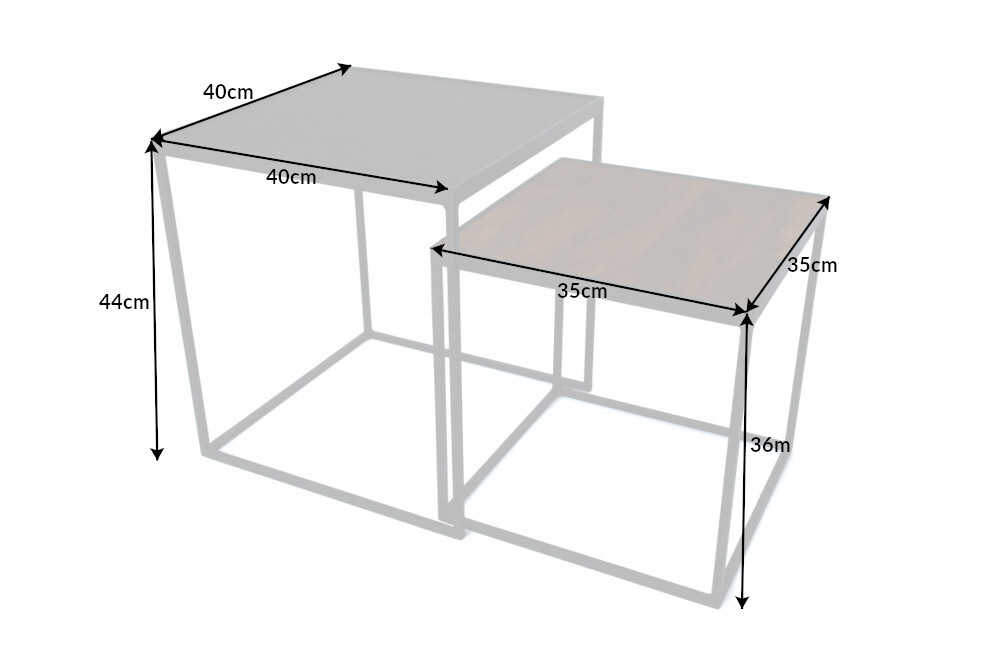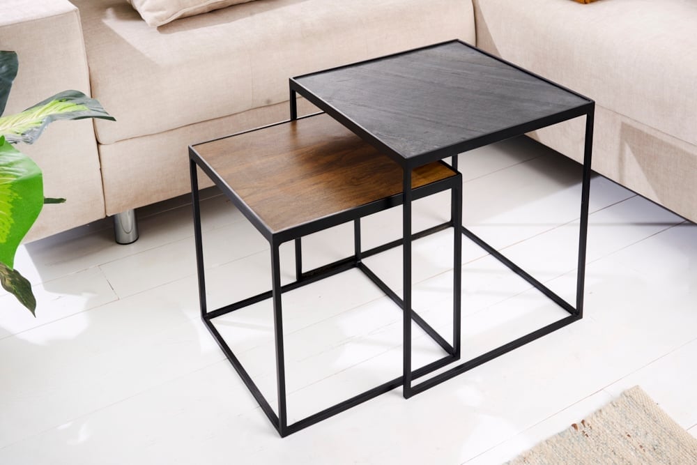 industrieele set van 2 salontafels FIRE AND EARTH 45cm massief mangohout leisteen metaal zwart – 42184