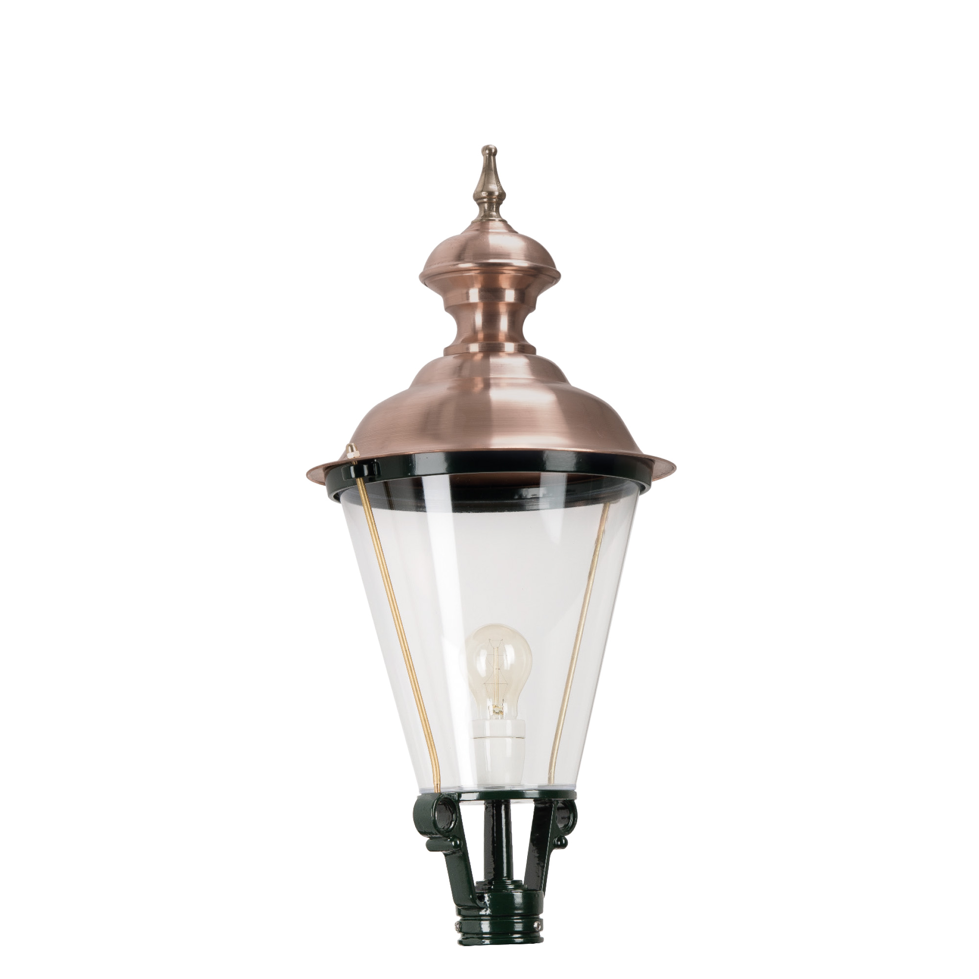 De K3A is een prachtige klassiek vormgegeven buitenlamp van KS Verlichting. De verlichting van KS zijn handgemaakte kwaliteitsproducten en staan bekend om hun hoogwaardige afwerking en het gebruik van kwalitatief duurzame materialen. In de lantaarnkappen wordt standaard gebruik gemaakt van een E27 porseleinen fitting waardoor de buitenlamp geschikt is voor energiezuinige en zelfs LED lampen. Deze lantaarnkap is altijd goed te combineren met de KS lantaarnpalen of muursteunen van gietijzer, aluminium of brons. De K3A lantaarnkap met een hoogte van 68 cm en een doorsnede van 30 cm wordt veelal toegepast in combinatie met een universeel KS sokkelplaatje (model 1401 van 10 x 10 cm) op gemetselde kolommen, pilasters, poortpalen of muren. Twijfel je over de juiste maat, neem dan gerust contact met ons op of breng een bezoek aan onze winkel waar je vrijblijvend alle verlichting kunt bezichtigen.