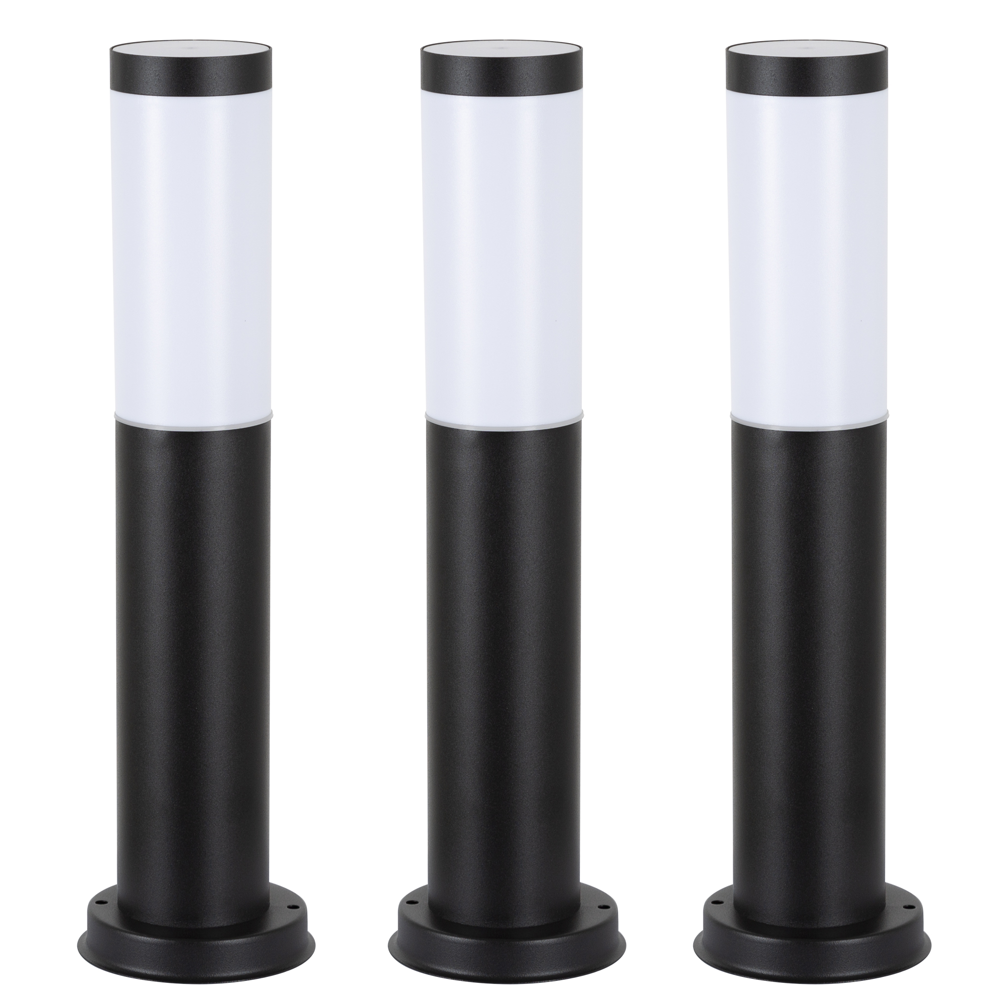 AANBIEDING TUINVERLICHTINGSet van 3 RVS tuinlampen. De RVS tuinlampen zijn voorzien van een zwarte gepantserde laklaag (poedercoating). Deze tuinlampen hebben een E27 lamphouder en zijn dus geschikt voor diverse (energiezuinige) lichtbronnen. Ook LED! De tuinlantaarns worden exclusief lichtbron geleverd.