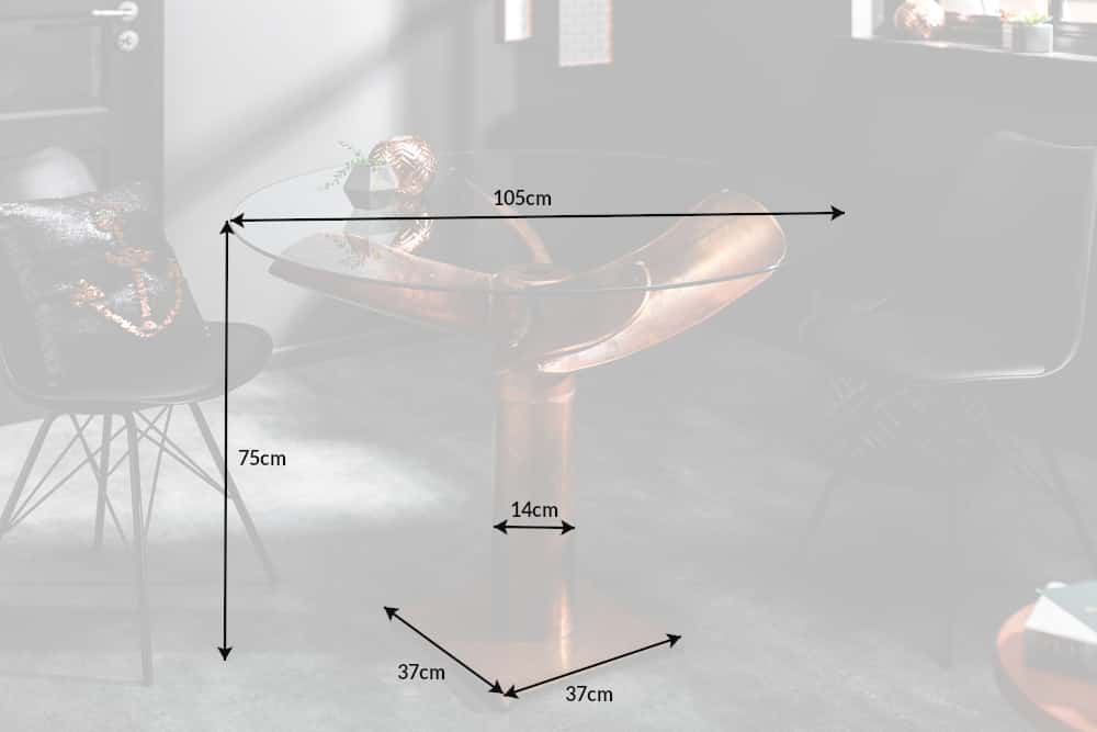 Maritieme eettafel OCEAN 105cm gevlamd koperen glazen tafel met scheepsschroef - 39922