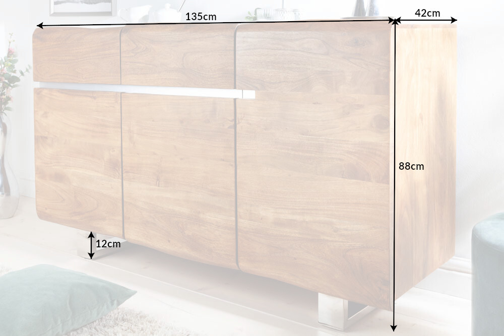 Massief boomstamdressoir MAMMUT 135cm acacia roestvrijstalen sledeonderstel – 38473