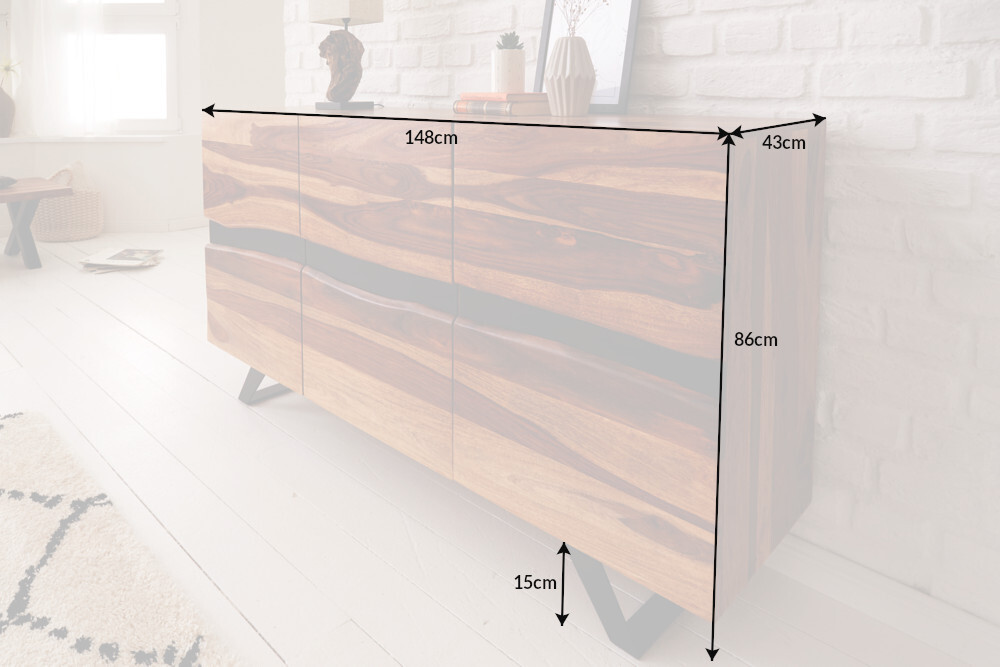 Massief dressoir AMAZONAS 150cm bruin sheeshamhout met boomrand – 40193