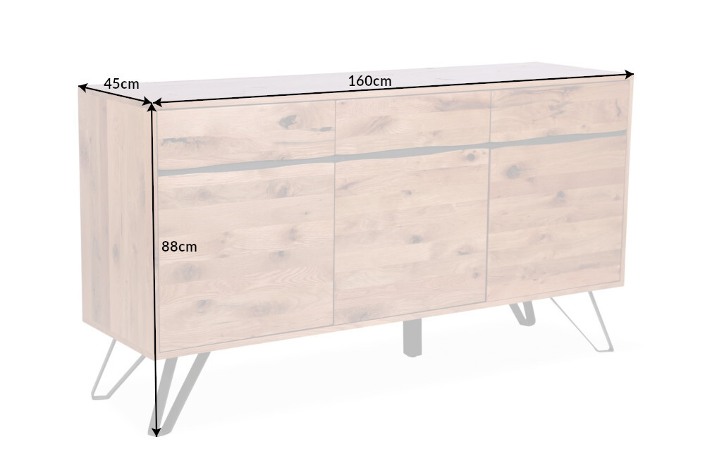 Massief dressoir LIVING EDGE 160cm wild eiken geolied boomrandbord – 39435