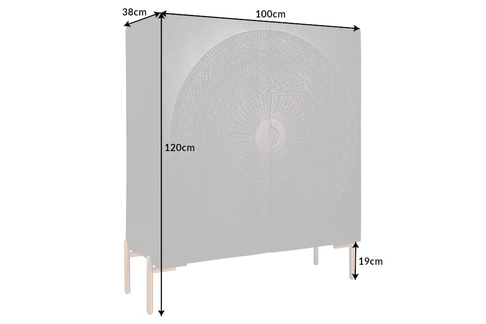 Maar het is niet alleen het uiterlijk van het dressoir dat vanaf het eerste moment indruk maakt. Ook het interieur is veelbelovend. Achter de rijkelijk vormgegeven deuren bevinden zich zes grote vakken met een natuurlijke mangohoutlook. Er is dus voldoende ruimte om borden, boeken of glazen uit het zicht op te bergen. Onze tip: Combineer het bord met enkele gouden woonaccessoires – zo ontstaat gemakkelijk een harmonieus totaalconcept en komt het bord perfect tot zijn recht.