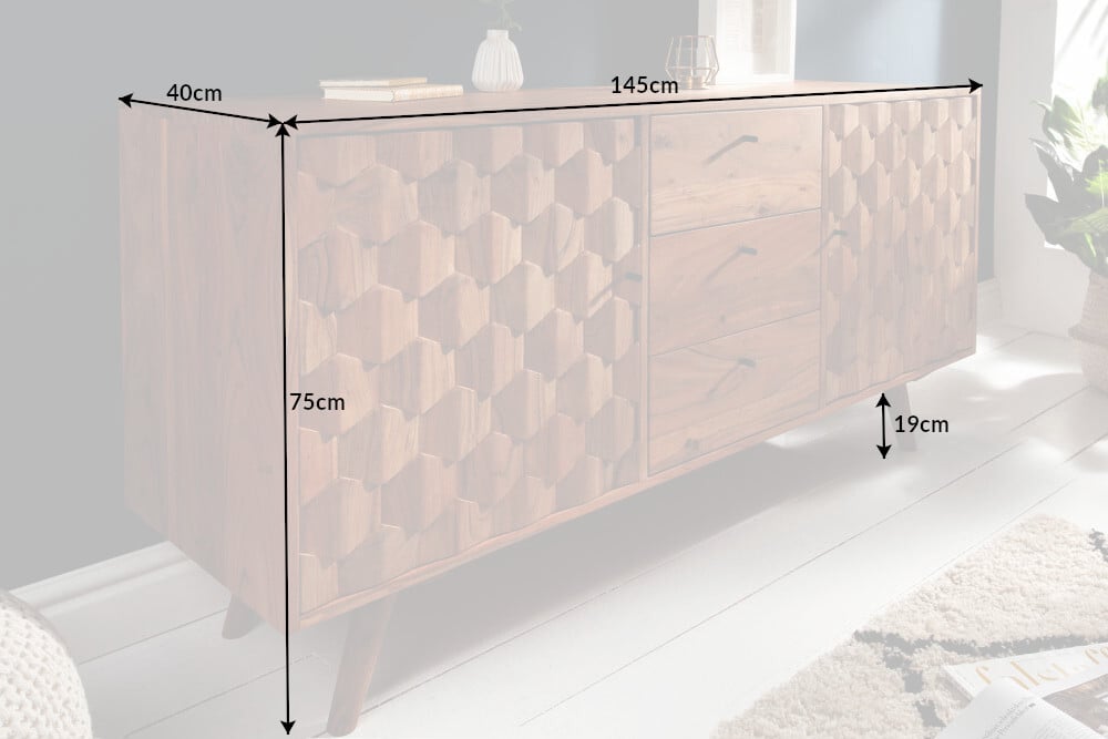 Massief dressoir MYSTIC LIVING 145cm natuurlijk acacia 3D oppervlak massief hout – 38420