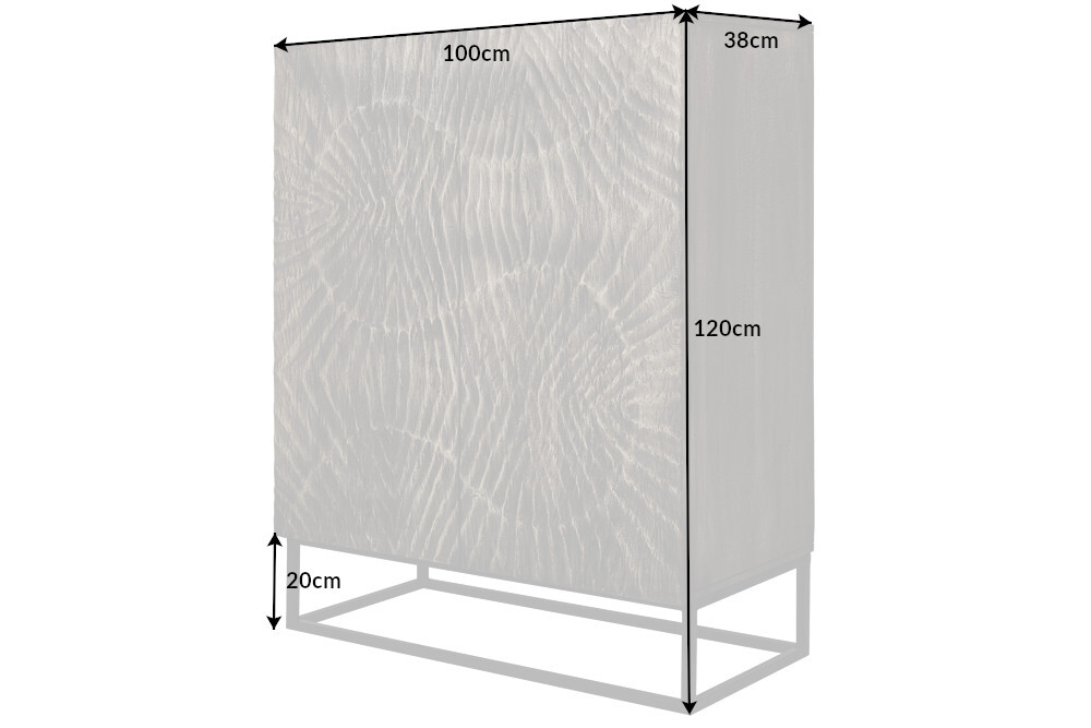 Massief dressoir SCORPION 120cm grijs acacia gedetailleerd 3D-houtsnijwerk – 41571