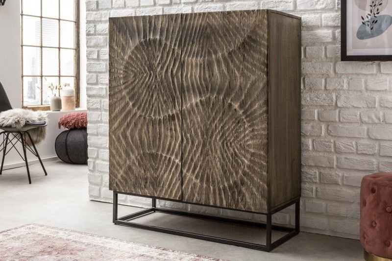 Houdt u van het bijzondere en ontbreekt het u in uw sfeer nog een beetje aan opbergruimte? Dan is ons extravagante dressoir precies wat je zoekt. Een solide body van gezandstraald acaciahout in tijdloos grijs rust op een eenvoudig zwart metalen frame. Het hoogtepunt van het bord is echter zonder twijfel het uitgebreide 3D-snijwerk dat op de twee grote deuren te vinden is. De organische vormen lijken over het oppervlak te vloeien en verrassen met hun buitengewone look en feel.
