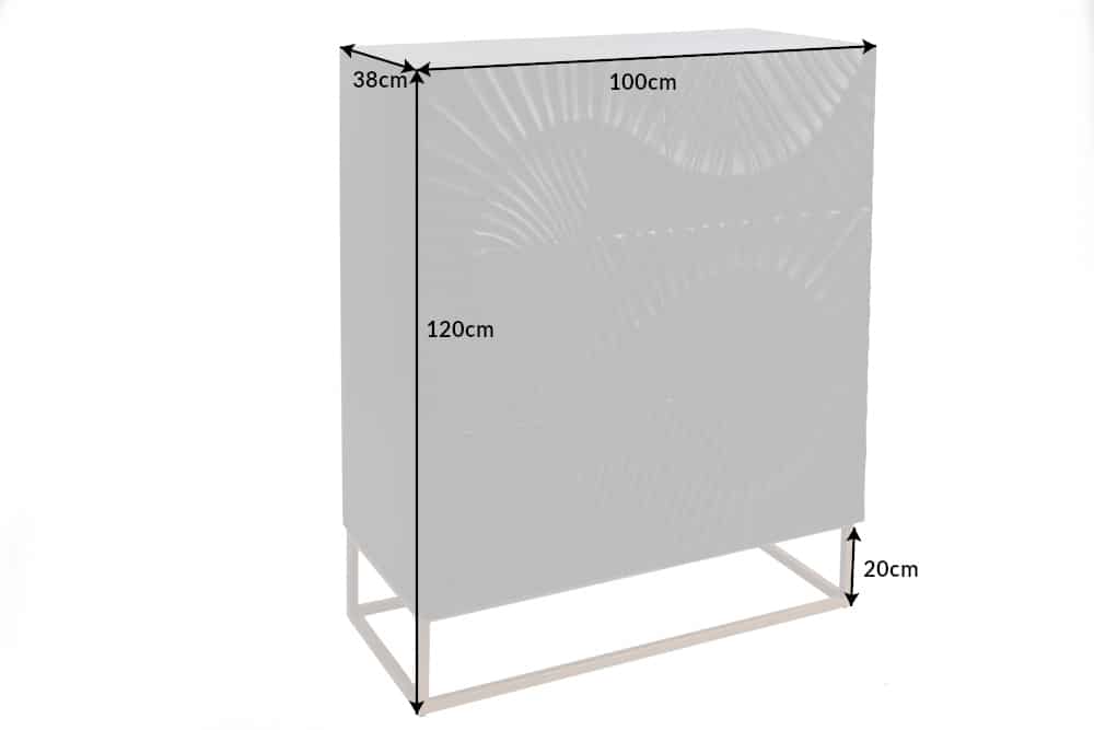 Maar het is niet alleen het uiterlijk van het dressoir dat vanaf het eerste moment indruk maakt. Ook het interieur is veelbelovend. Achter de rijkelijk vormgegeven deuren bevinden zich zes grote vakken met een natuurlijke mangohoutlook. Er is dus voldoende ruimte om borden, boeken of glazen uit het zicht op te bergen. Onze tip: Combineer het bord met enkele gouden woonaccessoires – zo ontstaat gemakkelijk een harmonieus totaalconcept en komt het bord perfect tot zijn recht.