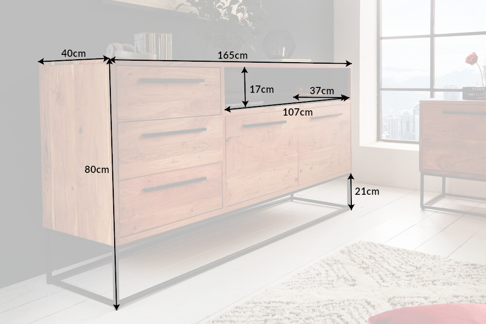 Massief dressoir STRAIGHT 165 cm acaciahout naturel zwarte industrieele stijl – 40295