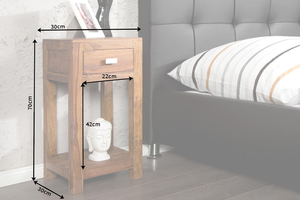 Massief houten bijzettafel MAKASSAR 70cm Sheesham telefoontafel metalen handvat met opbergruimte – 22679