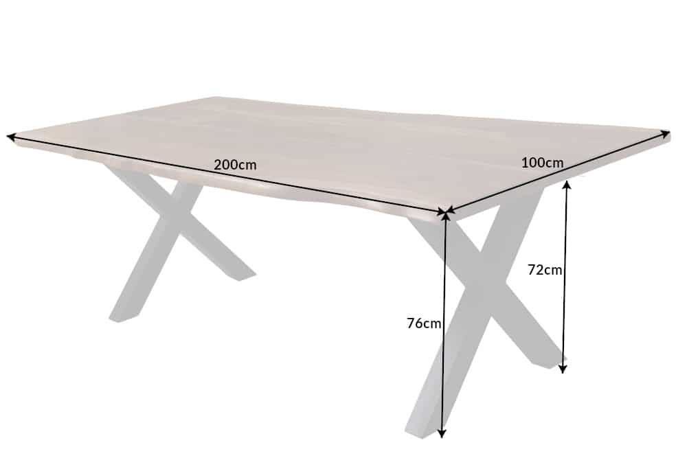 De AMAZONAS eettafel staat op een robuust X-frame van gepoedercoat metaal . Dit ontwerp zorgt niet alleen voor een hoge stabiliteit , maar geeft de tafel ook een modern tintje. Het samenspel van warm hout en koel metaal zorgt voor een aantrekkelijke balans die past bij verschillende interieurstijlen. Met een lengte van 200 cm biedt de gelakte houten tafel voldoende ruimte voor uw gasten. De eettafel met boomrand is zorgvuldig vervaardigd om een lange levensduur te garanderen en u langdurig plezier te bezorgen.