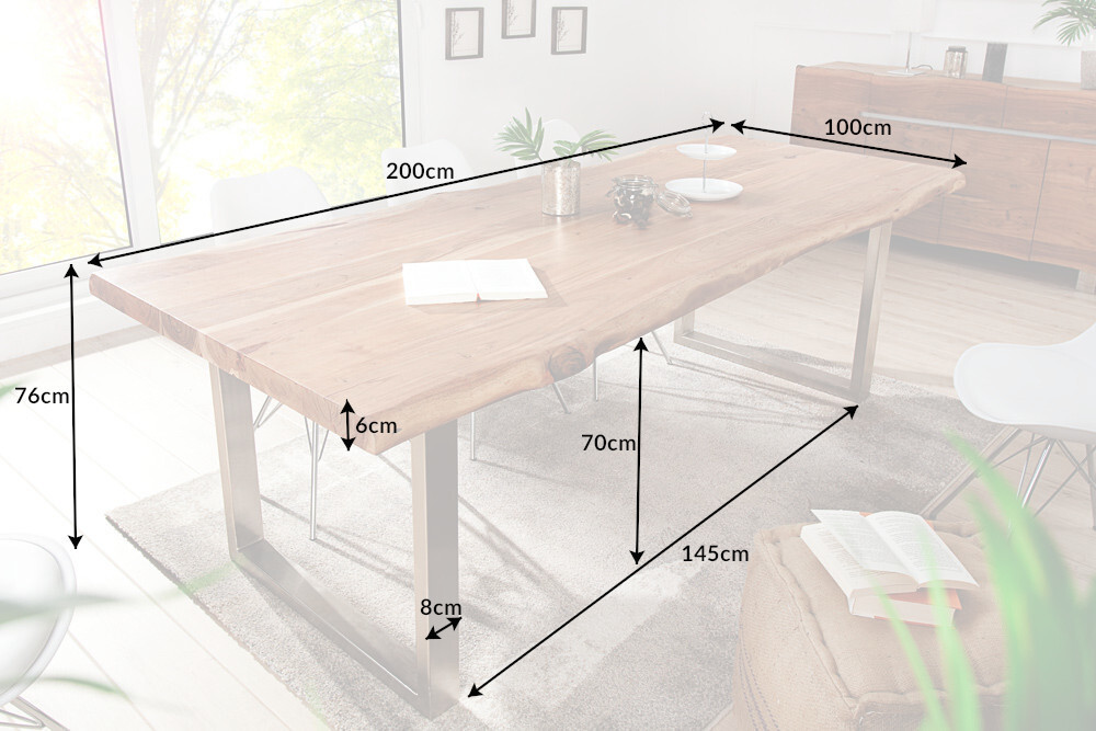 Massief houten eettafel MAMMUT NATURE 200cm acaciaboom rand 6cm tafelblad roestvrijstalen poten – 40127