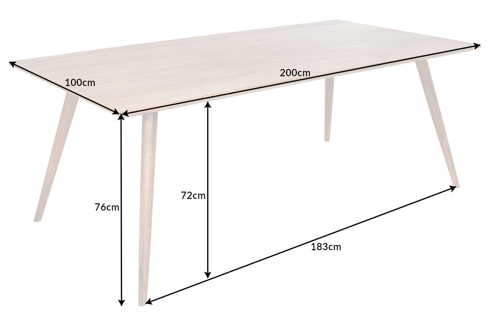 Elke maaltijd wordt hier een hoogtepunt! Onze MYSTIC LIVING eettafel is volledig gemaakt van hoogwaardig sheeshamhout. Het edele hout staat wereldwijd bekend om zijn indrukwekkende nerf, wat het hout absoluut uniek maakt. Het lakwerk benadrukt dit en maakt het bijzonder aantrekkelijk. De houten eettafel van 200 x 100 cm maakt niet alleen indruk door zijn intense houtnerf, maar ook door zijn bijzondere tafelrand – een mix van rechte rand en Zwitserse rand. De schuine houten poten onderstrepen de subtiele retrostijl en maken het ontwerp van de rustieke eettafel compleet.