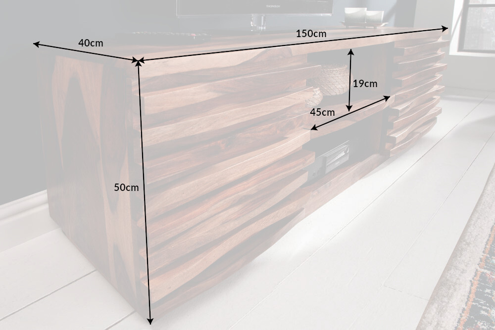Massief TV-lowboard RELIEF 150 cm sheeshamhout met uitgewerkt front – 38411